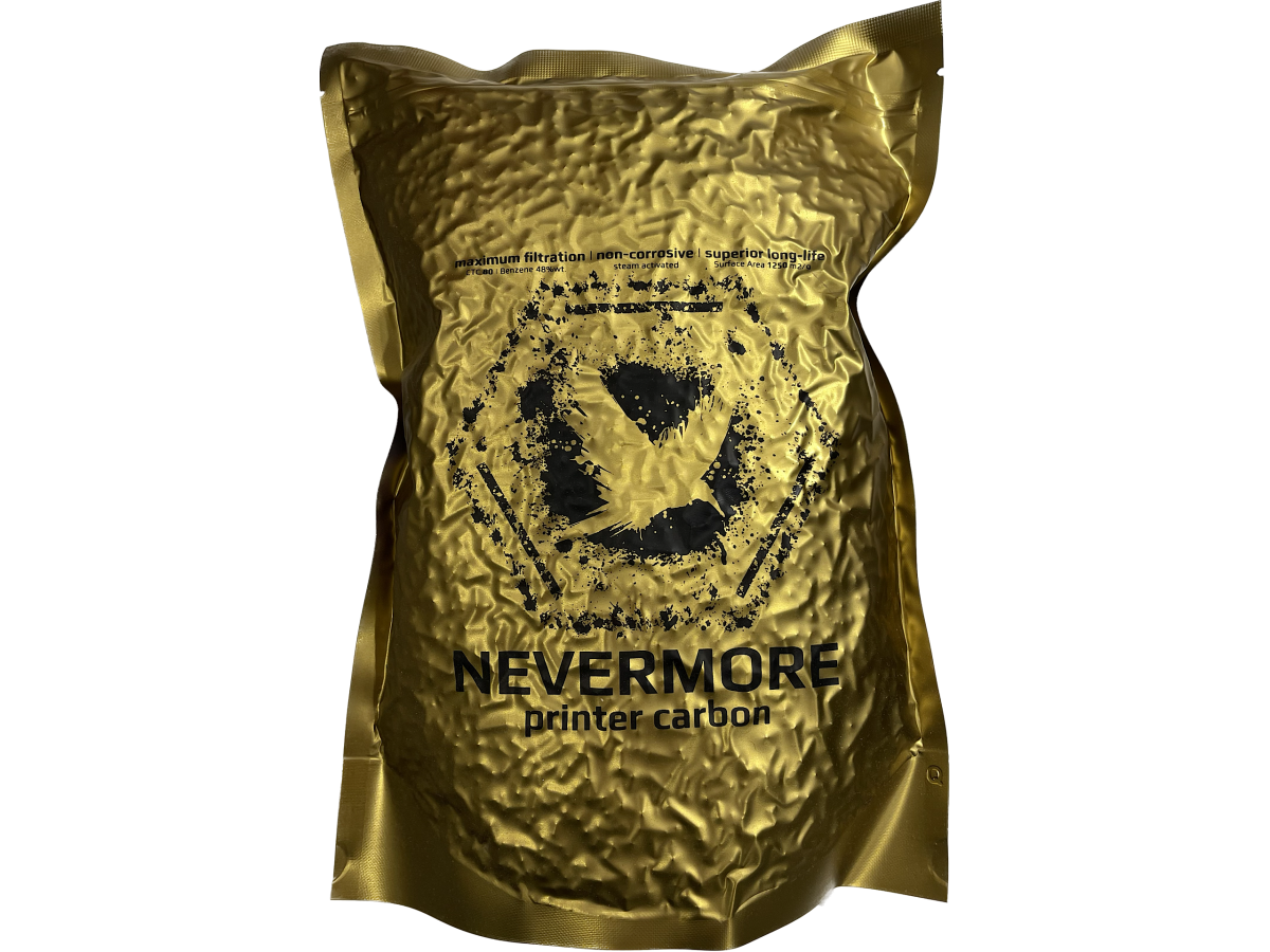 - Pre-prepared 50/50 mix of Nevermore Carbon and Nevermore Scorch; a less-hassle, best-of-both-worlds printer filtration