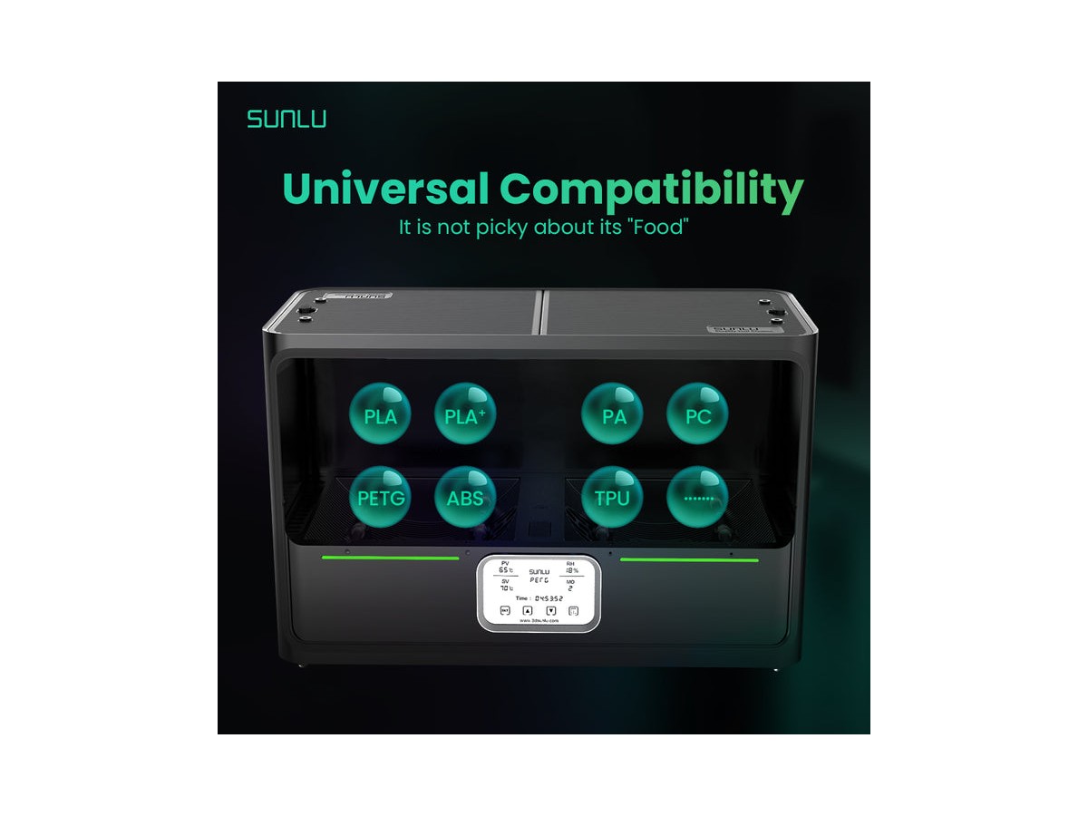 - The first dryer designed to accommodate four filament spools simultaneously, enhancing multi-color printing efficiency.